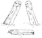 Идол представлял собой четырехгранный столб высотой 2,67 метра, высеченный из серого известняка. После того, как с него смыли налипшую землю, народ увидел — он разделен на три яруса, на каждом высечены различные изображения.