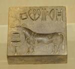 Печать, на которой можно увидеть набор символов. Народы долины Инд имели свою систему письма, она до сих пор не расшифрована. Печать создана между 2700 и 2000 гг. до н.э.