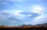 Нередко очевидцев пугают лентикулярные (линзовидные) облака – это очень редкое природное явление. Такие облака образуются на гребнях воздушных волн или между двух слоёв воздуха. Характерной особенностью этих облаков является их неподвижное положение, несмотря на ветер. Облака такие обычно наблюдаются с подветренной стороны горных хребтов, за хребтами и отдельными вершинами на высоте от 2 до 15 километров. Иногда они действительно выглядят, как летающие тарелки, особенно, если их «подкрашивает» освещение.