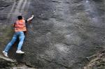 И вот новые открытия. В июне 2020 г. китайскими палеонтологами было проведено исследование следов, похожих на куриные, только огромного размера, ранее обнаруженных скалолазами на стене бомбоубежища "Шарен" в Гэлэшане. Что это за структура, я не нашел. Но в общем, не в этом дело. А дело в самих следах, которые оставила группа динозавров, хищных тероподов, около 190 млн.лет назад. Всего их 46 следов. Самый большой размером 35 см в длину, а самый маленький - 16 см.