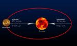 Год на этой маленькой планете занимает всего 88 земных дней, однако вокруг своей оси он вращается очень медленно. За один свой год Меркурий лишь полтора раза оборачивается вокруг своей оси, то есть, сутки здесь в два раза длиннее, чем год, и меркурианские сутки – это 176 земных дней, поэтому календарь тут выглядел бы весьма безумно. Кстати, у Меркурия есть ещё одна интересная особенность: если бы мы оказались на этой планете и наблюдали бы за движением Солнца по абсолютно чёрному небосводу, то нам бы казалось, что оно время от времени изменяется в размерах, и его диск кажется то большим, то меньшим. Но это легко объясняется его вытянутой эллиптической орбитой: